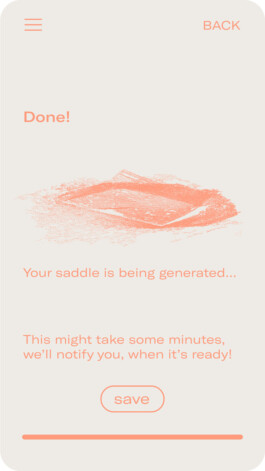 The process follows the principle of input/algorithm/output. The input is formed by the individual data of the users, which is gathered decentrally with an app. Utalising simple image recognition technology, a 3D model of the butt is created. Corresponding ergonomic data is then derived and additional preferences are entered.
