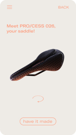 PRO/CESS is a gender-sensitive, fully customised and additively manufactured bike seat. In contrast to determined products, the concept embraces an open source process that focuses on the particular needs of users and rejects gendered standards.