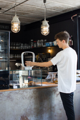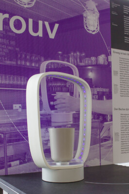 here, rouv provides clarity by allowing cups brought in to be disinfected quickly and in a user-friendly manner directly at the counter before they enter the hygiene area. the customer simply places the coffee cup on the turntable, which automatically begins to rotate under the irradiation of UV LEDs arranged all around. the germ-free cup can then be removed from the other side and handled without restriction behind the counter. new scientific findings enable rouv to use rays of a specific wavelength for disinfection, which are lethal to viruses and germs but harmless to humans.