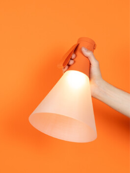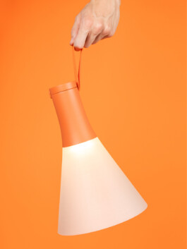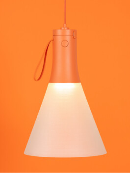 Vespertine combines the archetype of the familiar ceiling lamp with mobile lighting technology, featuring a ribbon for flexible hanging possibilities and a shade that acts as a diffuser for the pendant light and becomes a stand when the luminaire is used as an ambient or table lamp. Designed for an active lifestyle, it is rugged, weatherproof and has a battery life of up to 12 hours. The body also features a USB-C charging port for independent charging on the go.